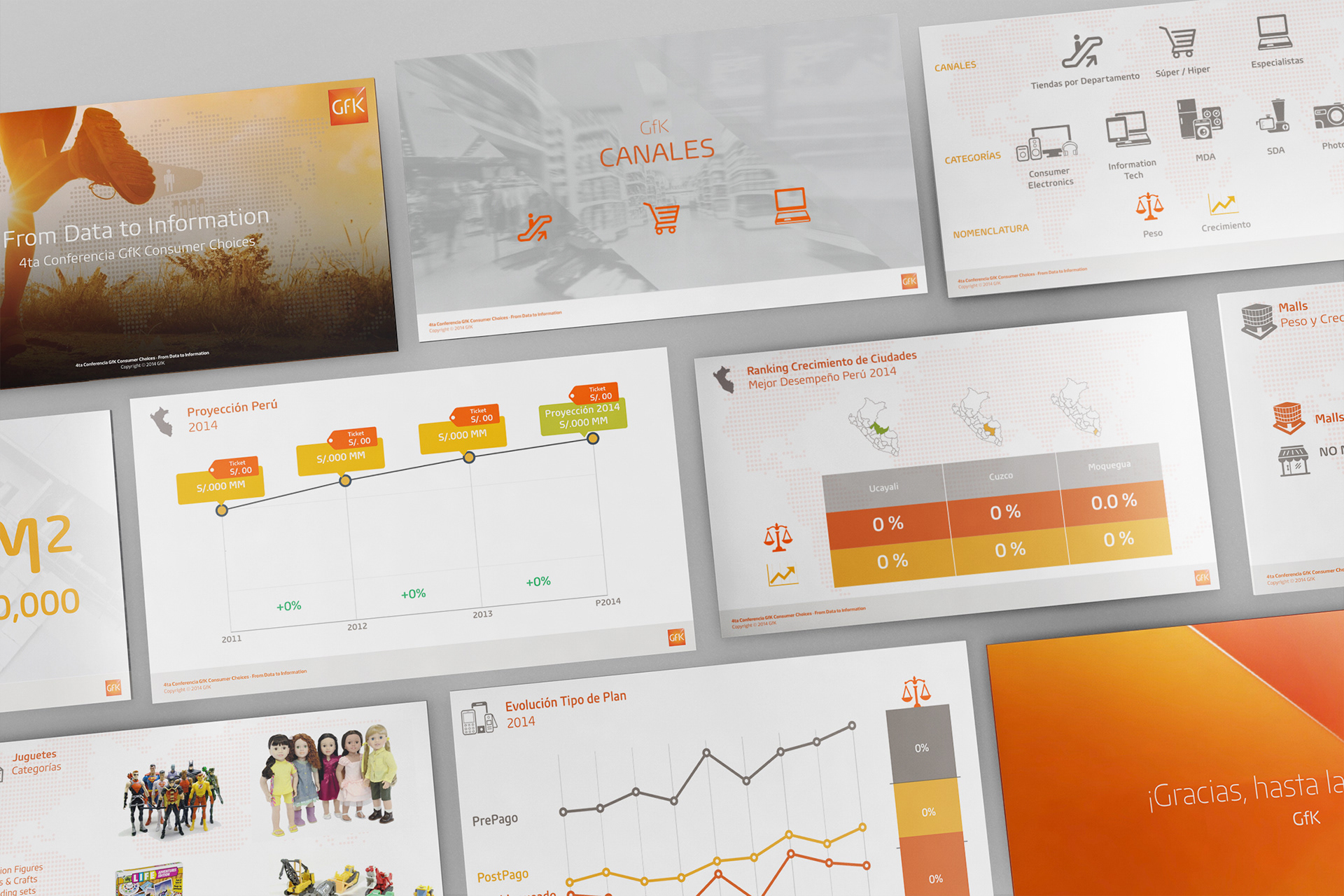 Collection of presentations for various clients, where complex information is analyzed and distilled into visual narratives through data visualization and slide design.
